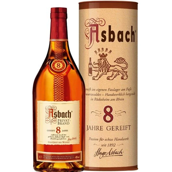 Asbach 8 Year Old is a German brandy known for its rich, full-bodied, and smooth profile that balances fruit, nut, and spice notes. Aged for eight years in Limousin oak casks, it offers a distinctively complex and sophisticated taste.