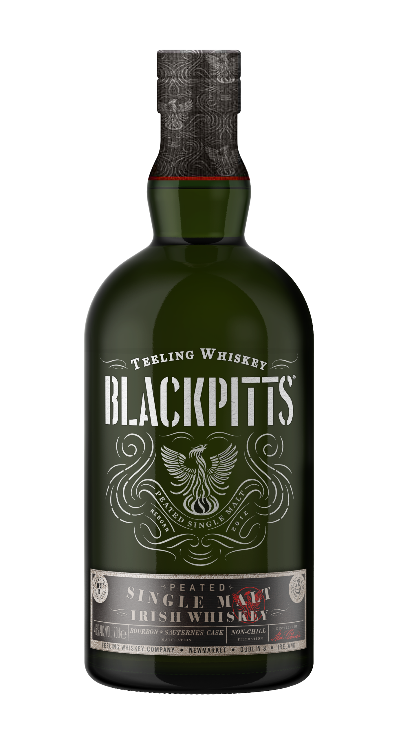 Teeling Blackpitts Peated Single Malt Irish Whiskey is a triple-distilled peated single malt, inspired by the historic Blackpitts area behind Teeling’s distillery in Dublin. Unlike traditional Scottish peated whiskeys, Blackpitts undergoes triple distillation, which softens the medicinal peat character and allows a barbecue smoke profile to shine.