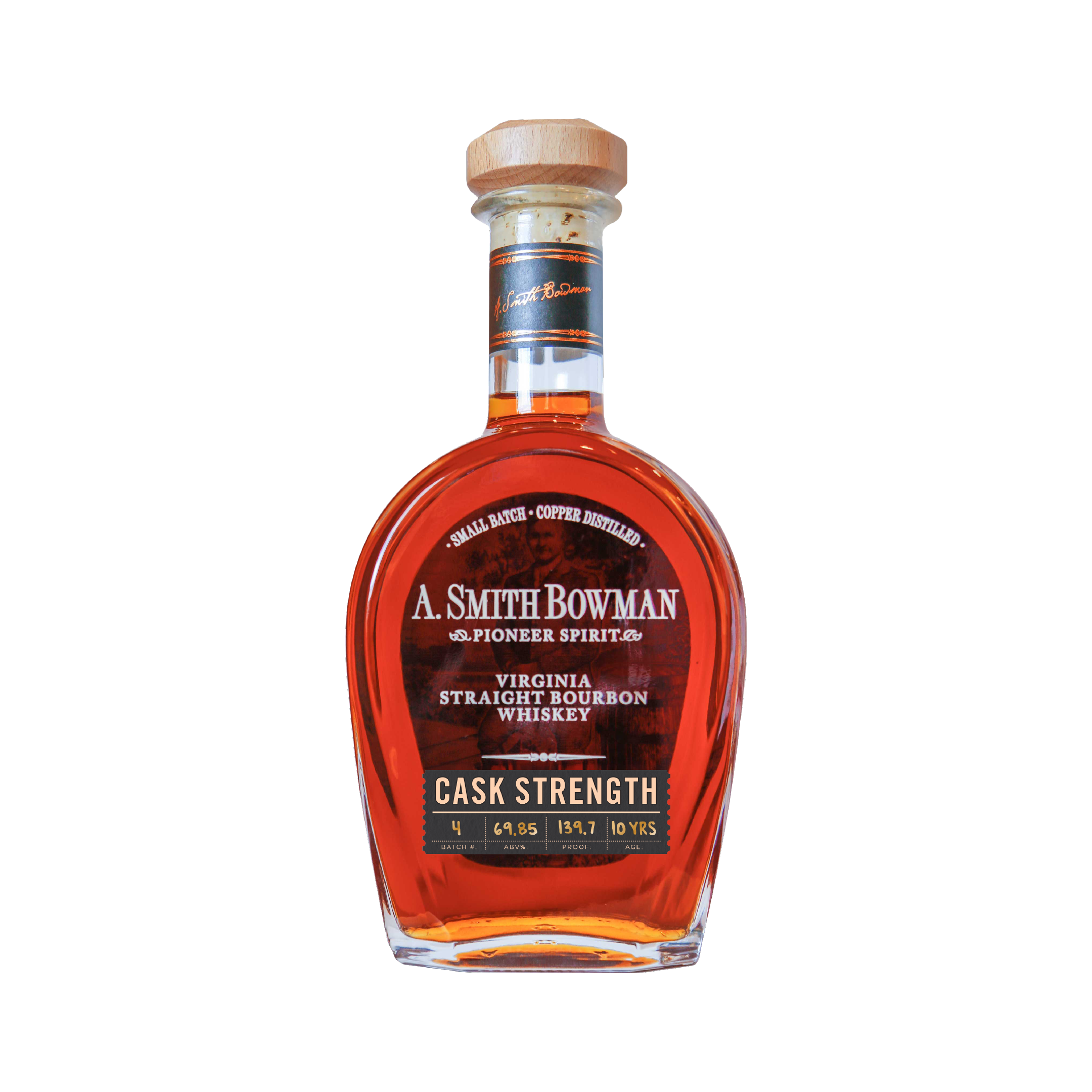 A. Smith Limited Edition Cask Strength Virginia Straight Bourbon Whiskey is 144.5 proof and was aged for 10 years. The nose is strong of cherry and toast with a slight hint of leather and caramel. Taste the flavors of apple and cherry first followed by vanilla and roasted nuts, which strike a great balance between the soft, sweet floral notes and strong wood char flavors. This bourbon is bottled uncut and non-chill-filtered, with a slick, peppery, and crisp aftertaste that leaves the tongue feeling like it’s bouncing in delight from the intensity of the experience.