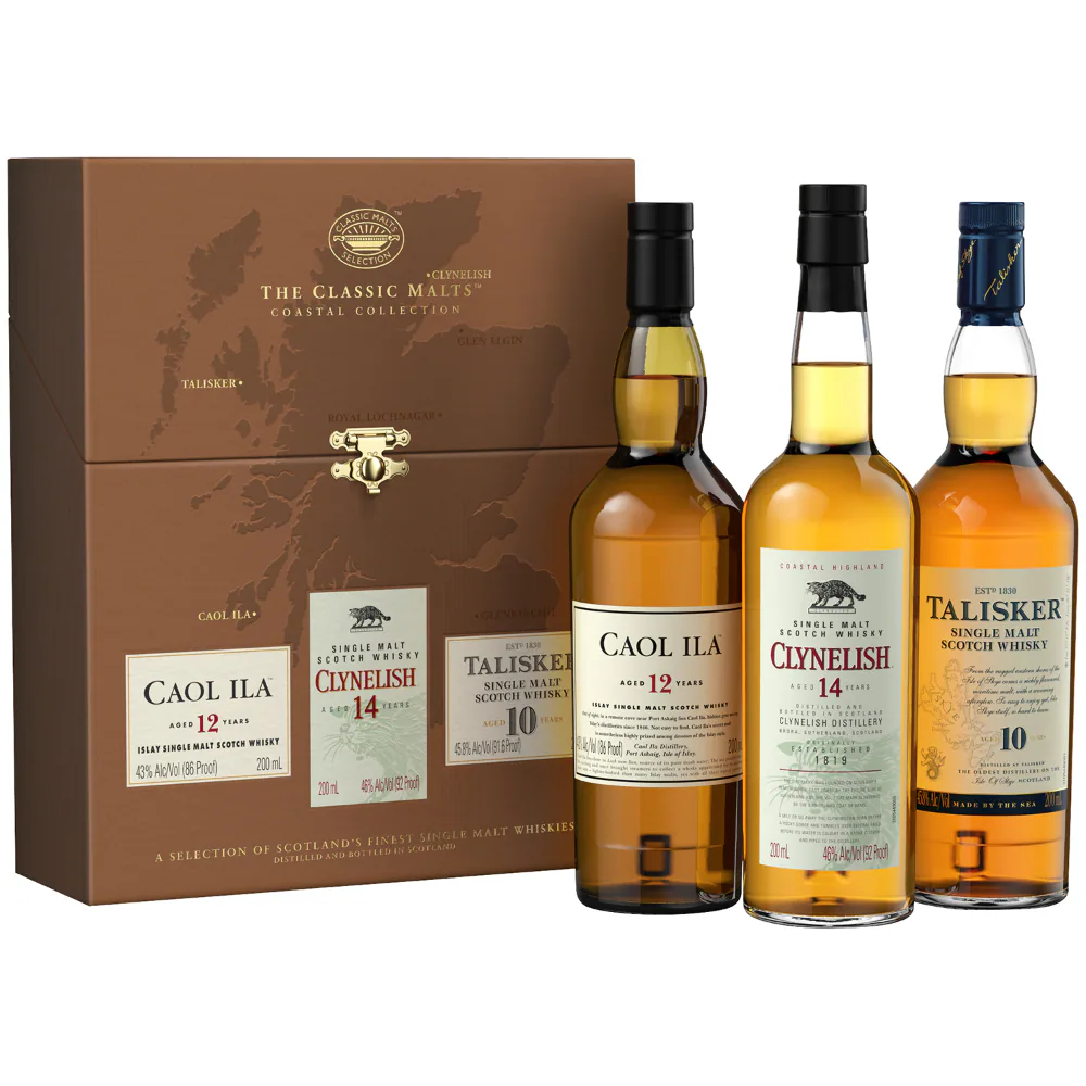 Caol Ila 12yr – The light, fruity nose fresh and appetizing, with a wisp of smoke and almonds. Firm, smooth, and light-bodied. Sweet at first, then fragrantly smoky and lightly salty in a balanced taste, smoothly leading on to a lingering, sweet-smoky finish that’s often likened to the dying embers of a beach bonfire. Sublime smoke. Talisker 10yr – Powerful peat-smoke on the nose, with a seawater salty-sweetness. Full-bodied. Rich, dried-fruit sweetness and clouds of smoke on the palate, with strong barley-malt flavors. Smoky-sweet and powerful, with an explosion of pepper at the back of the mouth, followed by a huge, long, warming and peppery finish. Sweet thunder. Clynelish 14yr – The sweet, light, waxy nose has a faint floral fragrance that grows to suggest scented candle wax, dried flowers on the beach, and brown sugar. Firm, light to medium-bodied. Smooth and creamy mouthfeel, with maritime notes always present. Salty-dry, with an attractive, crisp sea-air finish. Deliciously drinkable.