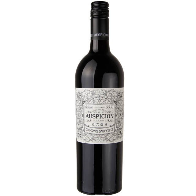 Auspicion Cabernet Sauvignon is a California wine known for its full body and complex flavors. It typically features aromas of ripe berries and plum, with a taste that includes black fruit, silky tannins, and notes of chocolate, toffee, and vanilla. The wine is aged in oak barrels, contributing to its smooth, lingering finish. It pairs well with red meats, lamb, hard cheeses, and red sauce pasta.