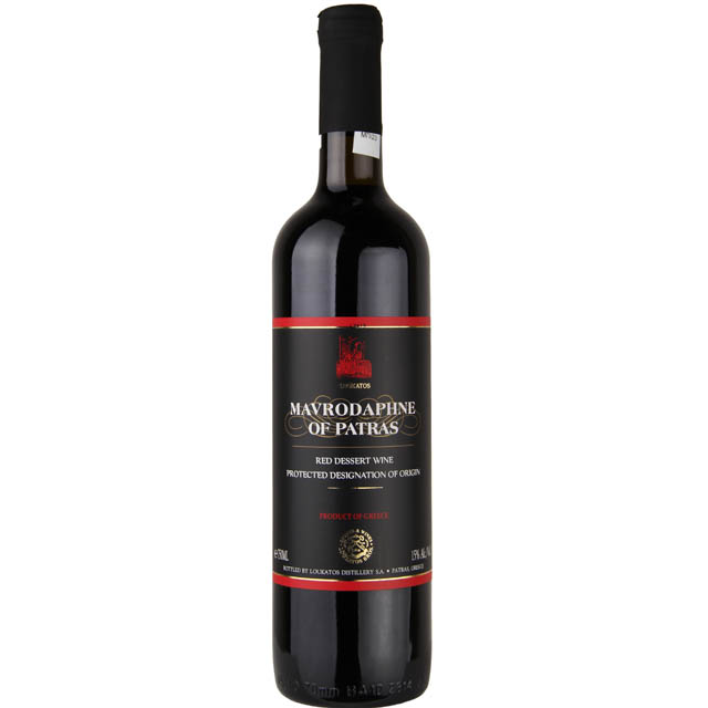 Loukatos Mavrodaphne is a sweet, red dessert wine with intense aromas and flavors of dark fruits like blackberry and blueberry, figs, and plums. Its taste profile is further characterized by notes of dark cherry, chocolate, coffee, and nuts, balanced by a full body and firm acidity. It is made from a blend of Mavrodaphne and Black Corinthian grapes and has an alcohol content of 15% ABV.