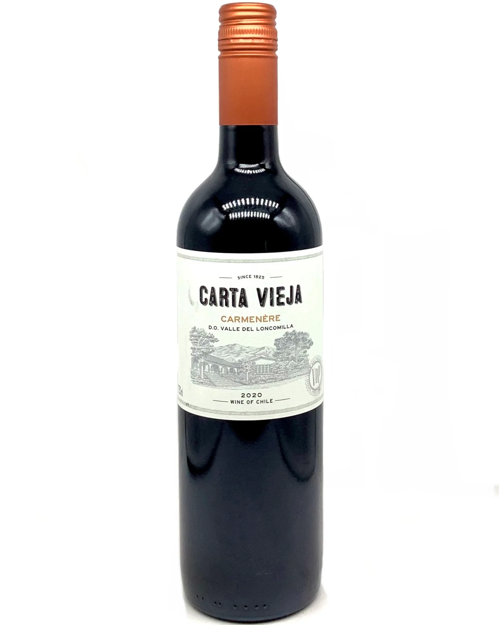Carta Vieja Carmenere typically presents a deep ruby or carmine red color with a fruity and spicy nose, featuring notes of blackberries, plums, cassis, and sometimes hints of chocolate, toffee, and cinnamon. On the palate, it is often described as silky, velvety, and sometimes slightly sweet, with a balanced body and a long, elegant finish.
