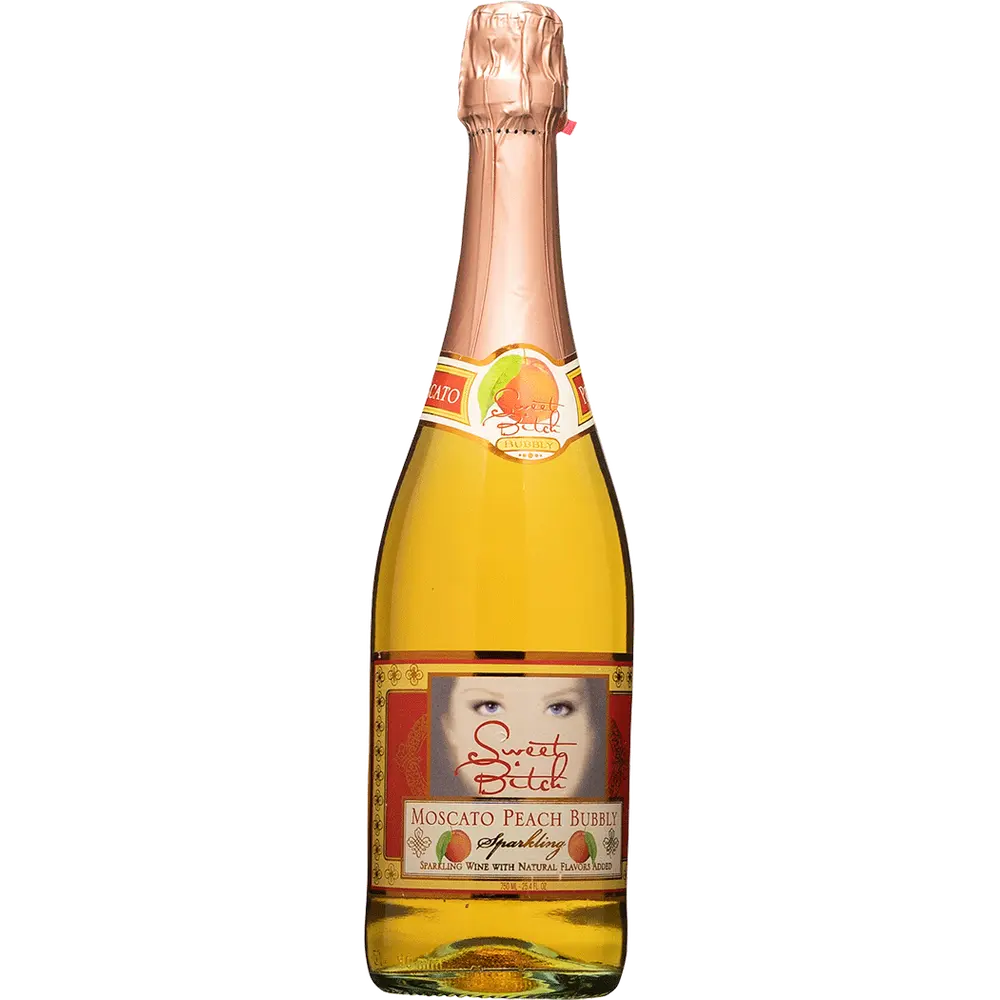 Sweet Bitch Peach Moscato is described as a sweet, fruity, and bubbly wine with a strong emphasis on peach flavors.