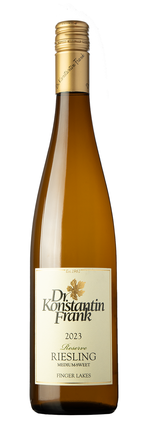 The Dr. Konstantin Frank 2023 Reserve Riesling is a refined and elegant wine, offering a harmonious blend of melon, cantaloupe, and apricot, with a touch of lemon zest. The palate showcases a delicate sweetness that is beautifully balanced by bright acidity, creating a vibrant yet smooth texture. This Riesling is versatile, making it an excellent match for rich cheeses, spiced cuisines, or slightly sweet desserts, enhancing the flavors with its well-rounded and sophisticated profile.