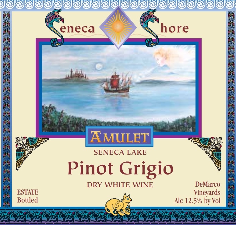 Seneca Shore Pinot Grigio tasting notes often include crisp, dry characteristics with hints of citrus like grapefruit, and fruit notes like honeydew melon. It has a dry finish with complex mineral and citrus notes, and a fullness of body that can be smoothed over by a slight fullness.
